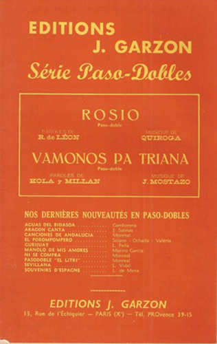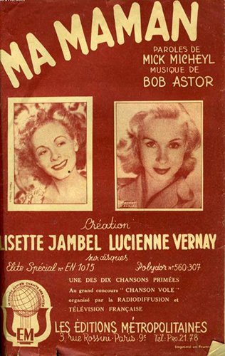 Les partitions désormais quasiment introuvables sur le marché proviennent d’éditions diverses : Rhodania, Présence, Paul Beuscher, Editions contemporaines, Jacques Hélian, Ray Ventura, Francis Day, Salabert, S.E.M.I., Eddy Barclay, Métropolitaines, Royalty, Albert Lasry, Tutti, Impérial, Charles Aznavour, Vendôme, Editions Universelles, France mélodie, Julio Garzon, etc.