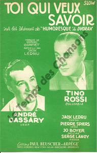 Chanté par André Dassary et Tino Rossi. L’arrangement est ici en fox médium. Editions S.E.M.I.