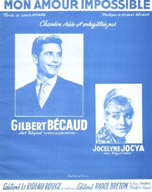 ![]() | Composée et interprétée par Gilbert Bécaud, arrangée en bossa-nova, mais aussi Suzanne Langlois (BNF) et Jocelyne Joycia (BNF) !!! |