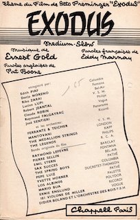 Chanté par Edith Piaf. « Exodus song » est la bande originale de « Exodus » réalisé par Otto Preminger et dont le rôle principal est joué par Paul Newman. Version chantée par Andy Williams.